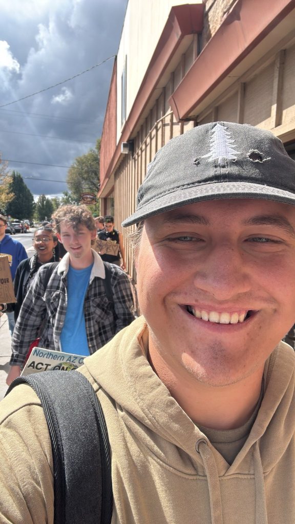 For the past two years I have worked in Flagstaff to register voters, advocated for causes like Proposition 139 to enshrine the right to reproductive freedom in Arizona, and have worked to increase transportation access in the City by advocating for a fare free Mountain Line. I had the privilege of hosting a city council forum in the previous election to educate NAU students on local issues, and now work as the NAU Campus Organizer for the Arizona Students Association, where I work to engage students in politics, particularly in the fight for funding higher education.